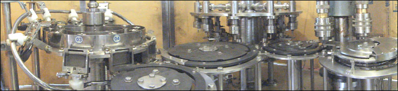 The Filling valves work on the gravity principle, the product is supplied to the filling bowl by a centrifugal pump, and the product level in the tank is controlled. The bottles are raised to the filling nozzle by positive lift cylinder, if the bottle is not delivered the valve does not open. The lift cylinders operate on positive cam lift-off principle and do not use compressed air or spring load. Lift cylinder cam is made of stainless steel and machined to fine finish and have simple harmonic motion profile to lift bottles smoothly to filling valve. The product will be filled to pre set level and the bottle is lowered. The tank and all rubber components are deigned to work at high temperatures.